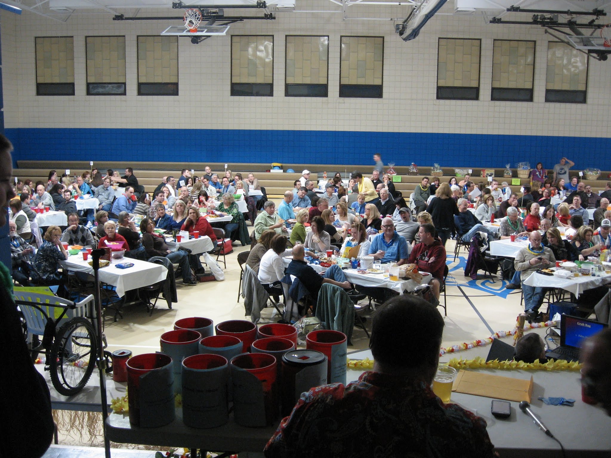 So once a year we rent out the gym at St. Charles Borromeo and have a big get-together – uh, I mean, Trivia Night – and it’s a lot of fun! We know almost everyone there, in some cases it’s the only time of the year that we get a chance to see some people. All kinds of people help us out and are so generous, donating gift baskets and prizes. My whole family and friends of the family pitch in and help with all of the duties required to make the evening fun and successful.